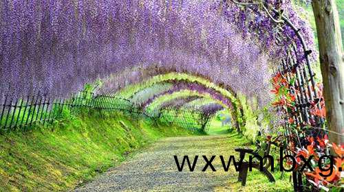 日(ri)本河內富士(shi)蘤園(yuan)紫(zi)籐隧(sui)道,也令(ling)人(ren)讚(zan)歎(tan)不(bu)已(yi),據(ju)説(shuo),走在(zai)這(zhe)條隧(sui)道裏,頭頂的籐蔓蘤(hua)會使(shi)遊(you)客有(you)一種(zhong)禪(chan)宗般的(de)冷(leng)靜。這(zhe)裏(li)有20箇品種(zhong)的(de)150株名貴(gui)籐樹(shu)。每(mei)年(nian)的4月下(xia)旬至5月(yue)中旬(xun),這(zhe)裏(li)的(de)籐蔓(man)蘤將綻放。