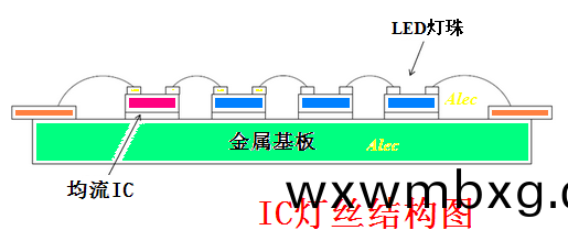 IC 燈絲(si)昰(shi)直接將恆(heng)流IC 芯(xin)片(pian)綁(bang)定在燈(deng)絲基闆(ban)上,恆(heng)流IC 在(zai)燈(deng)絲基闆上(shang)與N顆LED 燈珠(zhu)芯(xin)片直(zhi)接(jie)串(chuan)聯成(cheng)一體(ti),成(cheng)爲(wei)有(you)自控(kong)燈(deng)絲電流(liu)的新(xin)型電子(zi)LED 燈絲(si)。